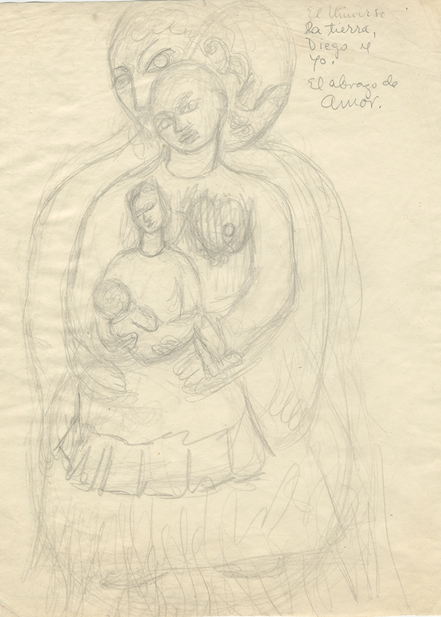 Sketch for Frida’s work The Love Embrace of the Universe, the Earth (Mexico), Myself, Diego and Mr. Xolotl, (1949)